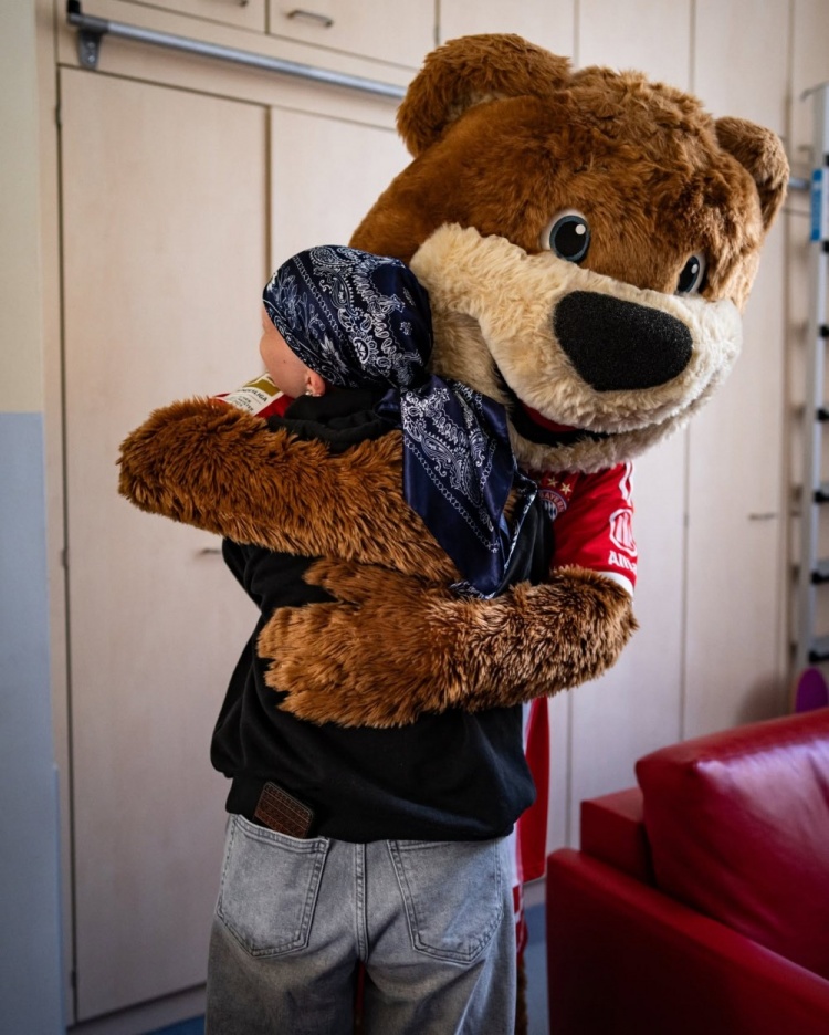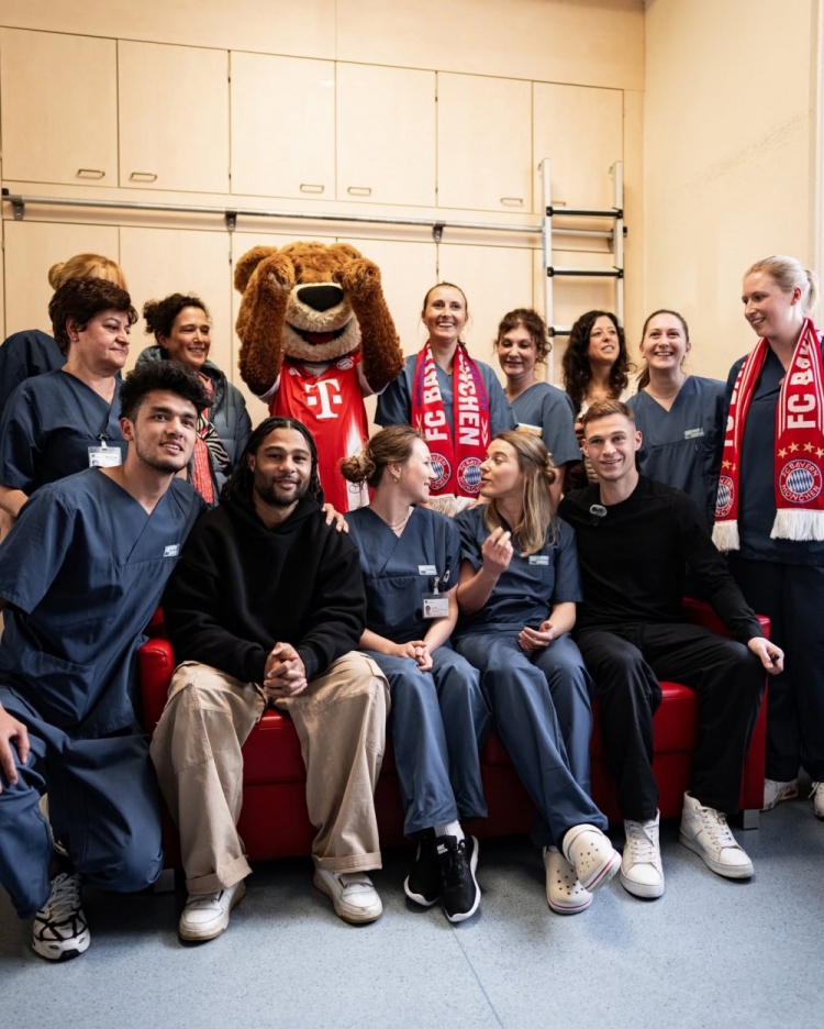 Gnabry, Kimmich và linh vật của Bayern đã đến thăm khoa ung bướu của Bệnh viện Nhi đồng Houner để thăm các em nhỏ bị bệnh và mang lại niềm vui cho các em. Bayern đã đăng những bức ảnh liên quan lên mạng xã hội để ghi lại ngày ấm áp này.
